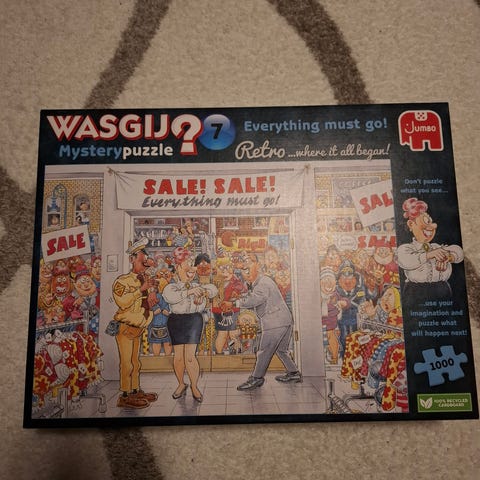 Myydään kerran kasattu Wasgij Mystery palapeli nro 13. Vihjelappunen mukana.