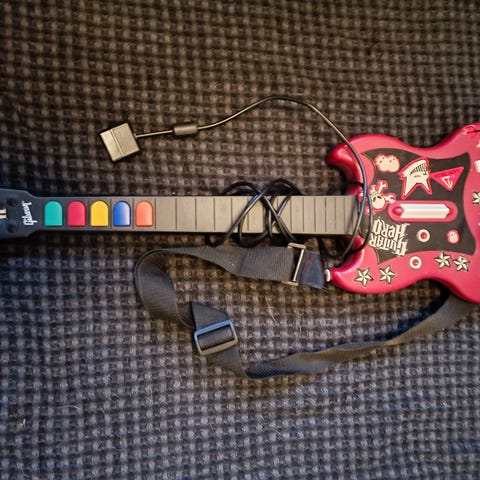 Kuvan mukainen täysin toimiva guitar hero kitara ps2 konsolille. Mukana hihna ja vastaanotin. Toiminta testattu. Postitus onnistuu tarvittaessa.