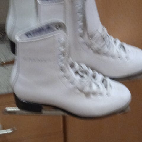 Luistimet, koko 36, valkoinen väri. Luistimissa on nauhakiinnitys ja lämmin vuori sisäpuolella.