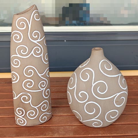 - Toinen maljakko on mattapintainen, leveä ja matalampi