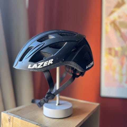 Lazer pyöräilykypärä, koko M (55-59 cm), musta väri. Kypärä painaa 340 g ja siinä on säädettävä istuvuusjärjestelmä. Sopii pyöräilyyn ja tarjoaa suojaa pääalueelle.