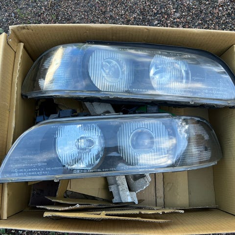 Toimivat bmw e39 Hella ajovalot eteenpäin. Täysin toimivat mutta ei kuitenkaan täydelliset. Vasemman puolen umpiosta Yksi kiinnike lähtenyt irti (kuva) ja yksi kiinnike hieman rikki (kuva).
