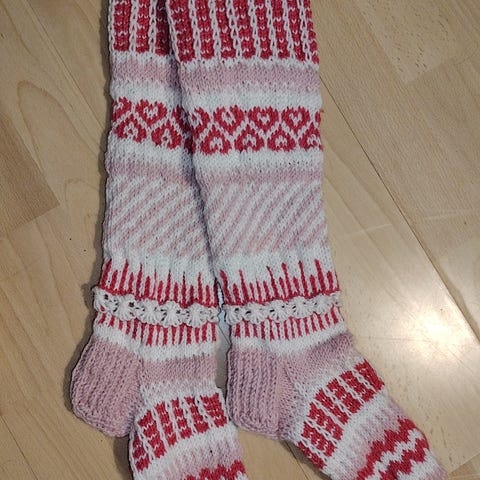 Käsin neulotut villasukat.
