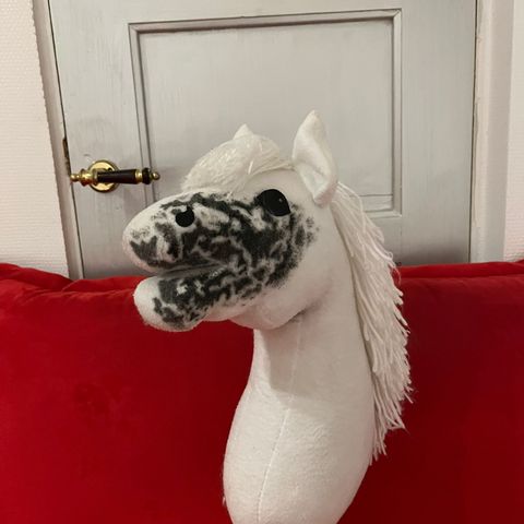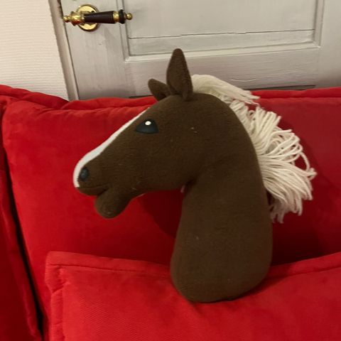 Itsetehty keppihevonen, jossa on valkoinen täplä otsassa ja pitkät ruskeat harjat. Ei ole juurikaan leikitty. Nouto tai postikulut ostajalle.