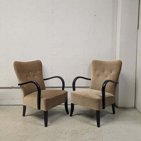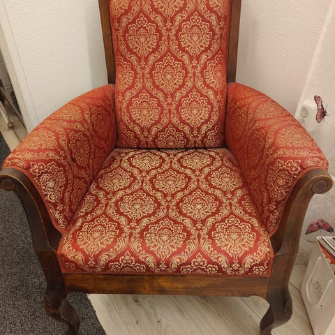 Komeat vanhan tuotannon Pormestarin nojatuolit etsivät uutta kotia. Molemmat tuolit ikäisekseen erittäin hyvässä kunnossa. Verhoilut ehjät ja siistit. Ei hajuja. Rungot tukevia. Myydään parina.