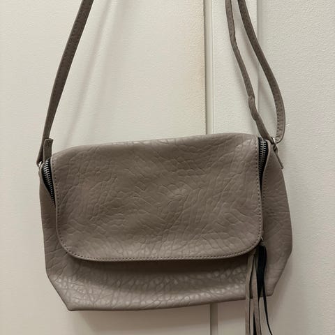 Laukussa säädettävä olkain. Kauniit kultaiset yksityiskohdat. Laukussa sisätasku ja takatasku. Hihna ottanut hieman väriä takaa ja myös hihnan kultainen kohta haalistunut.