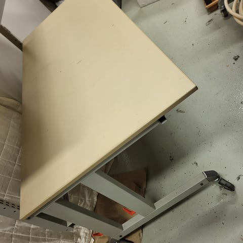 Hyvässä kunnossa oleva Rigdid työpöytä/kolmijalka eli Tristand. Jalat taittuu nippuun eli ei vie tilaa.