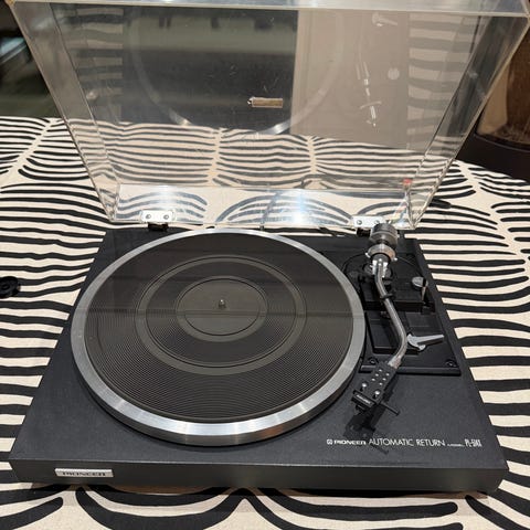 General P-1000 perus vinyylisoitin sekä huopamainen levymatto.