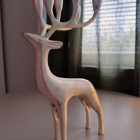 Hyvä kuntoinen kaunis messinkinen, hopeoitu poro kynttelikkö 24 cm