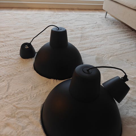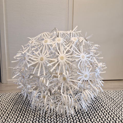 Valkoinen hyvässä kunnossa oleva Ikean maskros valaisin.