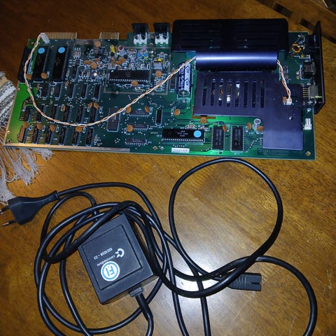 Vanhempi levyasema korjattavaks tässä pitkä piirikortti, kortin helposti iroitettavat sirut testattu toimivaks toisella levari eli joku muu vika tässä on. Myös koneisto testattu toisella piirikortilla ja pelejä sillä aukes vaikka hiukan rapina kuului, eli huolto ois sillekin hyvä tämä on valmistettu Japanissa 1981 ja ollut valkoisessa 1541 levarissa luultavasti tä on samanlainen kun oli myös 1540 malleissa.