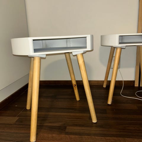 Vaalen ruskeat tukevat ja siistit yöpöydät. Jonkun verran pientä käytönjälkeä on. Pieniä naarmuja kansissa. Hinta yhteensä.