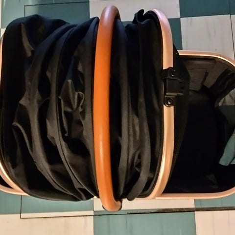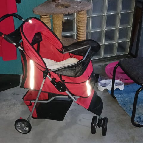 Vaaleanpunaiset lemmikin rattaat. kokoontaittuvat ja kevyet kantaa.