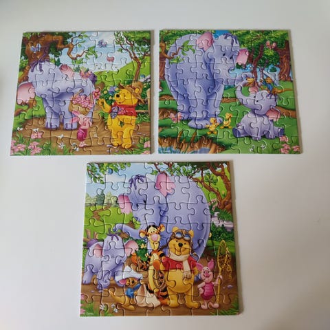Ravensburger Trolls palapeli, joka sisältää kolme erillistä palapeliä, jokaisessa 49 palaa. Palapelit ovat värikkäitä ja teemana on Trolls-hahmot. Kaikki palat tallella.