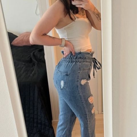 Tummansiniset baggy farkut. Käytetty ihan muutaman kerran.
