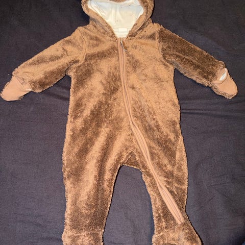 Ellos vauvojen pörröinen nalle haalari, koko 62, väri valkoinen, materiaali polyesteri, vuori puuvillaa. Jaloissa umpi lahkeet tassu kuviolla ja käsissä hihan voi kääntää kiinni.