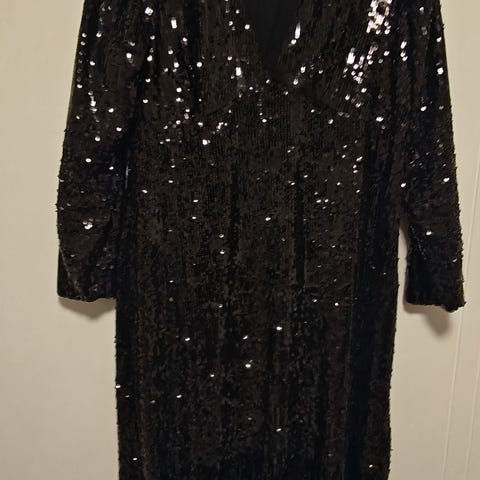 Zizzi paljettimekko kaunilla niskarusetilla, koko XL. Mekossa on 7/8 hihat. Vain kerran käytetty, joten kunto erinomainen.