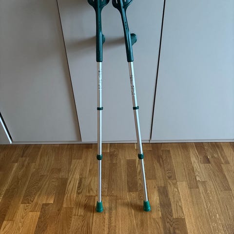 Säädettävät, alumiiniset Ossenberg-kyynärsauvat ergonomisilla kädensijoilla. Hyväkuntoiset kumit alla ja mukana jääpiikit. Tukevat ja kevyet, hyvä apu vaikka polvivaivaiselle.