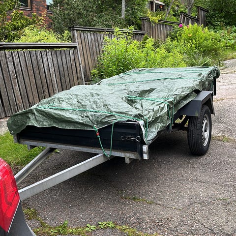 Rakenna päälle sauna, kylpytynnyri, mökki tai kuljetukseen moottorikelkka, mönķäri, vene, moottoripyörä. Rekisteröity, samanlainen kuin kuvassa mutta vanerointi puuttuu.