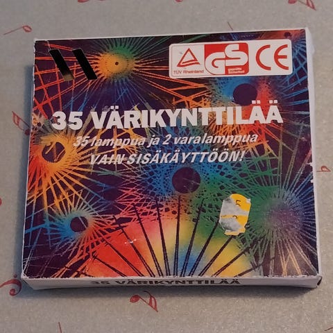 Vintage 20 värikynttilän sähkökynttiläsarja koristevaloksi sisuste-elementteihin. Käyttämätön ostopakkauksessaan, täysin toimiva.