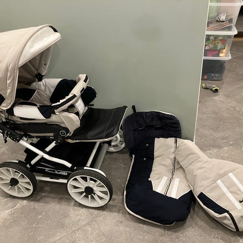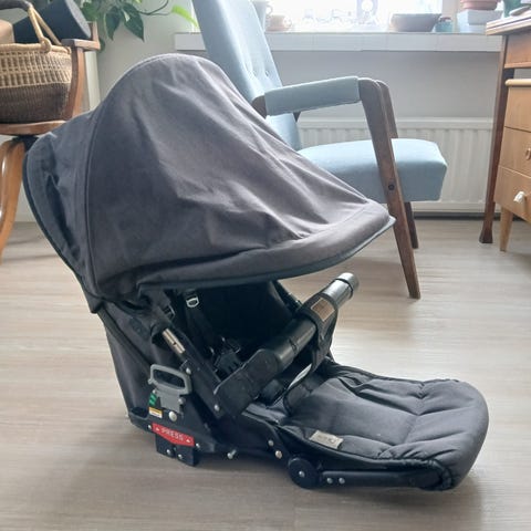 Emmaljunga lastenistuin vaaleanpunaisella värillä. Istuin on varustettu turvavöillä ja pehmustetulla selkänojalla. Sopii lastenistuinratkaisuun lastenvaunuihin tai rattaisiin.