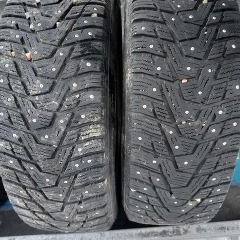 Vanhat talvirenkaat, joitain nastoja puuttuu. Hyvin pintaa