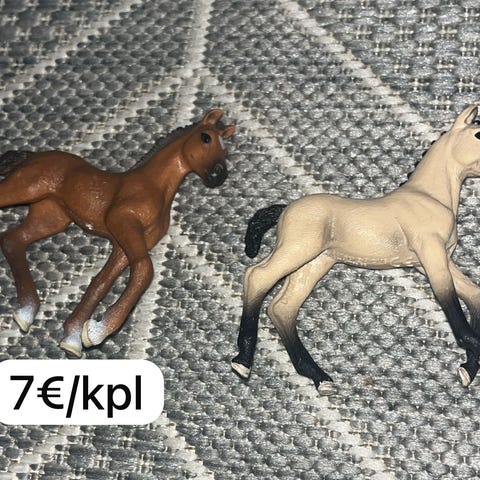 Hyväkuntoiset hevoset 8 euroa kappale, varsat alarivissä 5 euroa kappale.