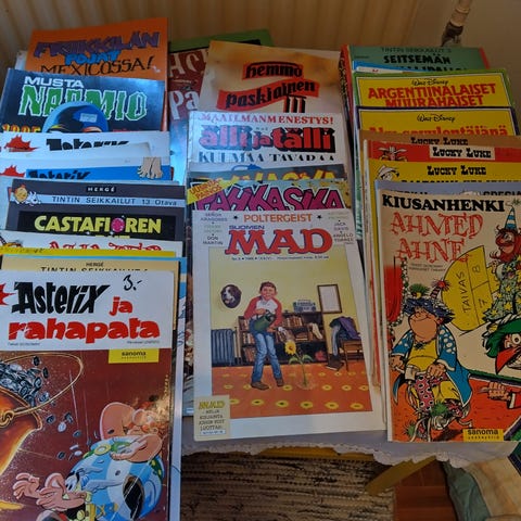 sarjakuva albumeita ja lehtiä paljon.