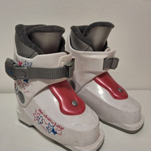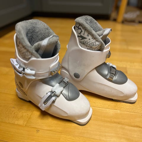 Lasten laskettelukengät, sisäkengän koko 165 mm eli suunnilleen kengän koko 24-25.