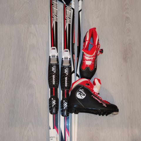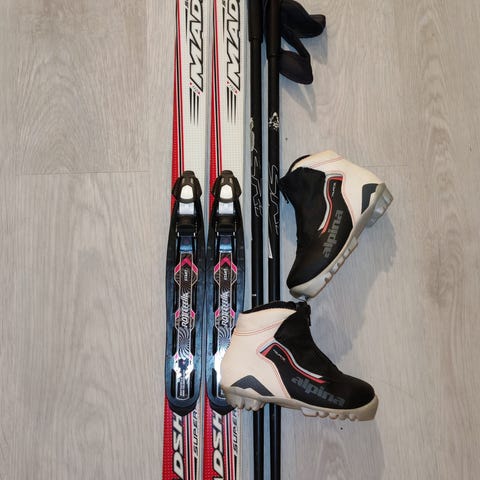 Sukset Madshus 100 cm pitopohjalla, sauvat ja monot, löytyy ainakin koot 27,28,29,30,31