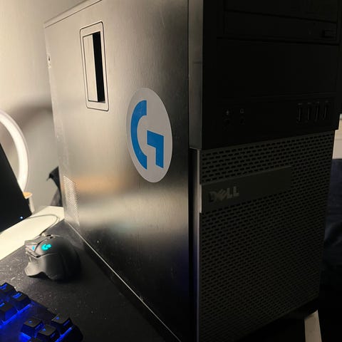 Tästä tinkeröity dellin kone kevyeeseen pelaamiseen, mihin ahdattu GTX1050Gb ja 16Gb ramia.