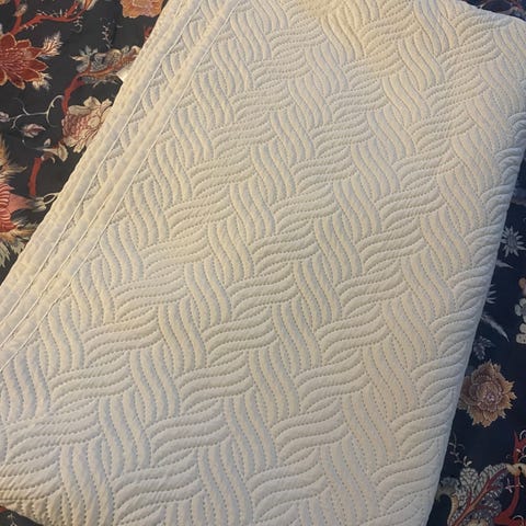 Myydään Salusiini Ritva Niskasen suunnittelema ja valmistama päiväpeitto (180x200) ja 3 tyynyä (50x50). Päiväpeitossa helma (korkeus n. 47 cm), jonka voi halutessaan laittaa patjan alle. Erittäin laadukasta ja helppohoitoista materiaalia. Kaikki ovat siistissä, todella hyvässä kunnossa. Myydään koko paketti yhdessä.