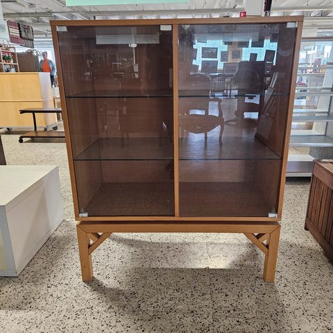 Ostan tai otan vastaan puisen tumman ruskean vitriinin tai muun kaapin.