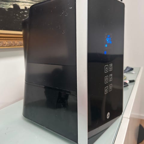 Täysin toimiva Wilfa Lotus HU4-4W -ilmankostutin. Täydellä säiliöllä käy 10h, tilasuositus 30m². Mahdollista käyttää myös erillisiä tuoksutyynyjä. Pohjan tiivisteessä kalkkeumaa (katso kuvat), en ole yrittänyt puhdistella sen kummemmin. Muuten siistissä kunnossa.