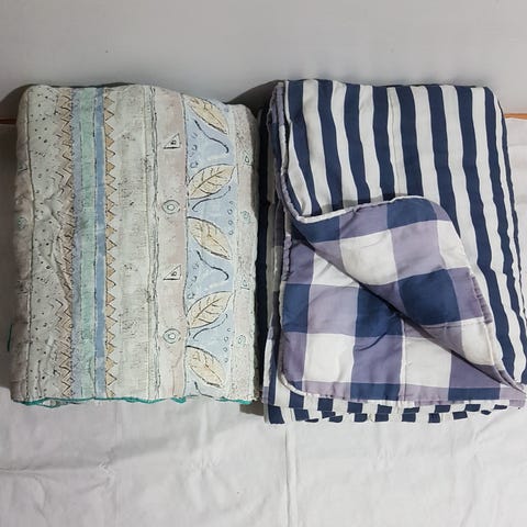 Pieni reikä peiton päädyssä, mutta ei näy kun on asetettu sängylle. Nouto harjukadulta.