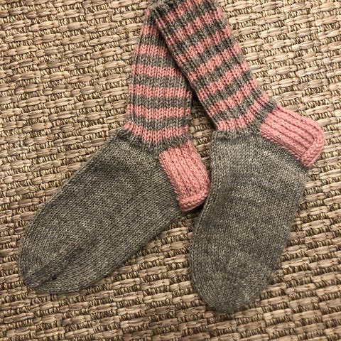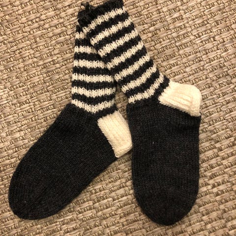 Käsin kudotut villasukat 7 veljestä langasta. Koko 39 (25 cm) ja väri harmaa & valkoinen. Kissatalous 🐈