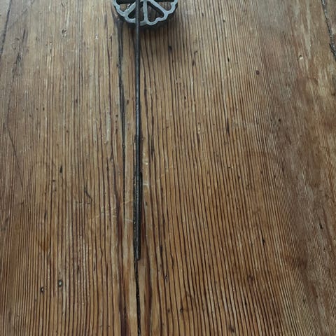 Myydään hyväkuntoinen metallinen raastinrauta. Korkeus 17 cm. Hieman vääntynyt muttei haittaa käyttöä.