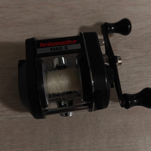 Made in Sweden. Vahvistettu runko leveillä puolilla. Välitys 4.2/2.5:1. Siimaa 400m/050. Abun oma voimakampi.