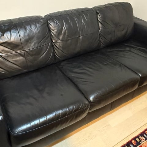 Mukava ja tyylikäs LANDSKRONA-nahkasohva puisilla jaloilla. Käyttöpinnoilta aitoa nahkaa, ulkopinnoilta keinonahkaa. Pinnat hyvässä kunnossa, ei lemmikkien naarmuja tms. Sohva on taakse syvä istuttava, jossa löhöily on luontevaa pidemmällekin rentoutujalle.