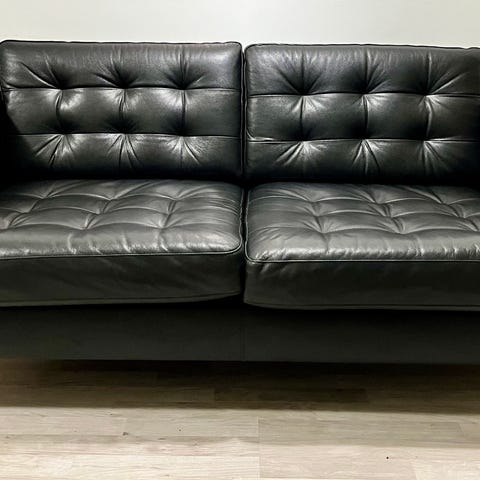 LANDSKRONA 2-istuttava sohva, musta (nahka/keinonahka/puu)