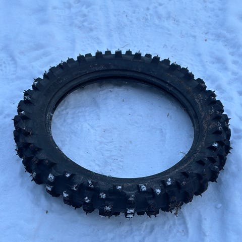 Pitoja! Uudenveroisessa kunnossa 19" piikkirengas eteen. Kasikymppeihin tai Sur-Ron/Talaria/sähkövatkainosastolle. Uusi vastaava Mitas 177€