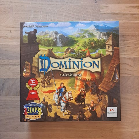Myydään pelaamaton Dominion Valtakunta lautapeli. Kortit vielä alkuperäismuoveissaan.