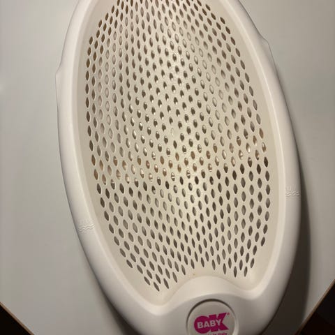Kylpytuki, jossa verkkomainen osa on joustavaa muovia/kumia ja siten pehmeä vauvan alla. Taitettava jalka, joten kylpytuki ei vie paljoa tilaa. Koon puolesta sopii hyvin esim. Ikean Lättsam -kylpyammeeseen.