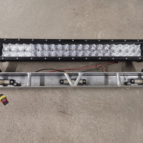 Juuri pulverimaalattu ja lakattu mustaksi maalaamossa. Yleismallinen. Mukaan valorautaan mitoilla teetetty tukeva kilpiteline joka myös pulverimaalattu. Ei muita kiinnikkeitä mukana. Oli itellä Transporterissa kunnes lisävalot varastettiin. Nouto Pirkkalasta.