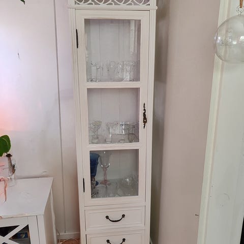 Ok kuntoinen vitriinikaappi,hae pois. Kantoapuna voin olla.