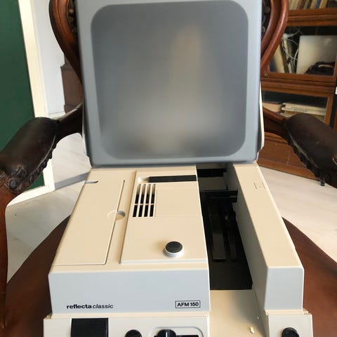 Myydään aikansa laadukas Reflecta Diamator A diaheitin + diamakasiini + linssin suojus. Kuten ottamaltani videolta näkyy testasin projektoria, ja se vaikutti jopa yllättävän hyvin toimivalta ikäisekseen: Kuva oli tarkka, säätimen napista vaihtaa diaa ja myös tarkennusnappi tuntui tarkentavan molempiin suuntiin. Koska laitteella on kuitenkin jo reilusti ikää se myydään siinä kunnossa kuin on ilman takuuta. projektori diaheitin heitin laite katselulaite dia diafilmi tykki kannettava vintage retro filmi katselu diakaruselli makasiini diamakasiini diojen