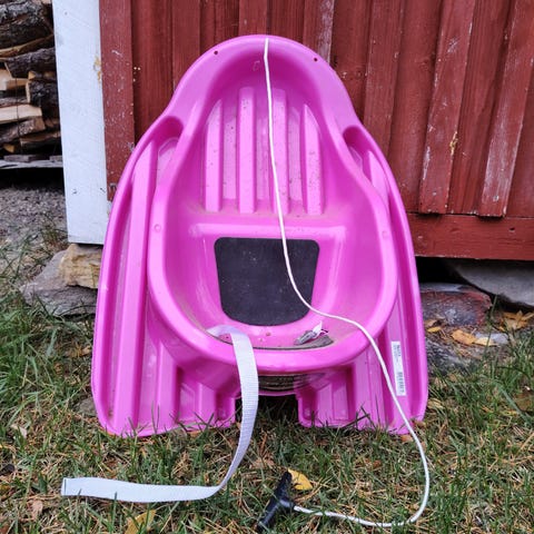 Stiga vauvapulkka valmistettu vihreästä muovista. Pulkassa on istuin ja vetoköysi. Vaatii puhdistusta mutta on ehjä ja hyvässä kunnossa. Nouto Niittylahdesta.