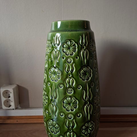 Korkeus 20 cm, kukkakuviokaiverrus, ehjä ja särötön