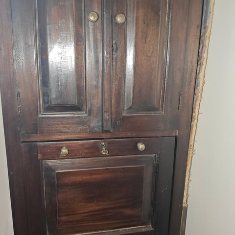 Hakusanat: retro, kompakti, säilytys, funktionalismi, kaappi, kulunut, kaapit, käytetyt huonekalut, hylly, naarmut, kaapisto, vintage huonekalut, hyllyt, kolhut, taso, levy, lukko, huonekalu, huonekalut, ovi, puu, tummapuu, puinen, käytännöllinen, vintage, suomalainen muotoilu