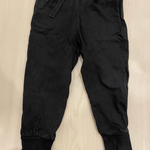 Vihreät H&M-merkkiset collegehousut koossa 98. Hiukan toisen lahkeen resorissa kulumaa.